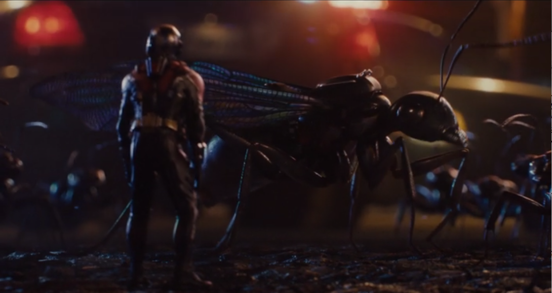 アントマンは蟻たちと協力しながら戦います。ピム博士の発明した、電磁波をつかった通信装置で蟻たちは調教されています。