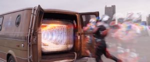 バーチたちの追っ手は迫り、スコットが自宅にいないこともFBIへの密通によりバレてしまいます。量子トンネルは作動しましたが、スコットは自宅に戻ることを選びます。量子トンネルでジャネットの元に向かえる時間はわずか2時間。ハンクが量子世界でも耐えうる特殊スーツを着用し、量子世界に向かいます。しかし、その装置は起動中にサイズダウンしたビルごと盗まれます。その間にスコットはキャシーの手助けを得て、FBIの疑惑を回避しましたが、エイヴァの手に装置は渡ったままでした。