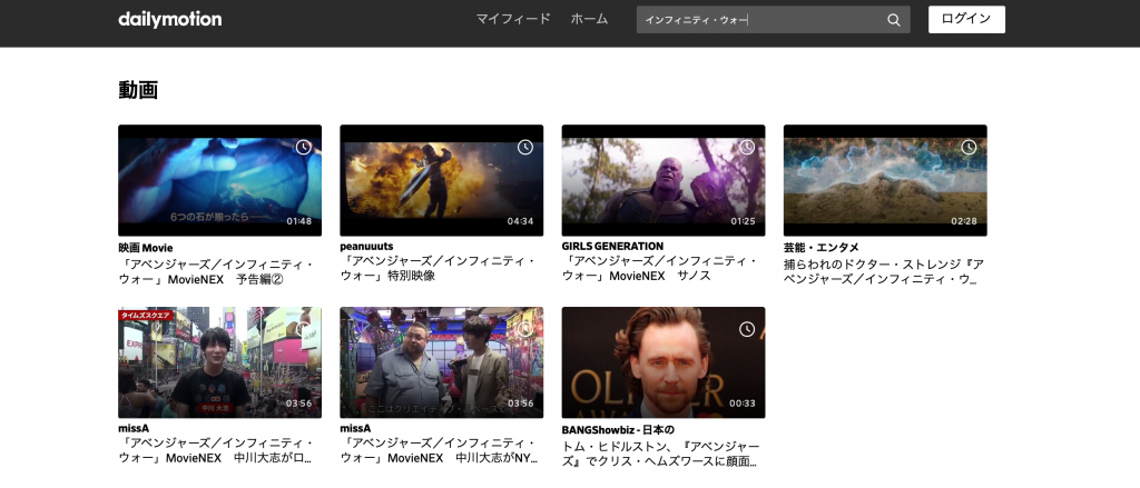 違法サイトに関しては、インフィニティ・ウォーは全滅でした。有名どころだとdailymotionがありますが、予告編や抜粋映像がいくつかヒットしますが、本編は観られません。