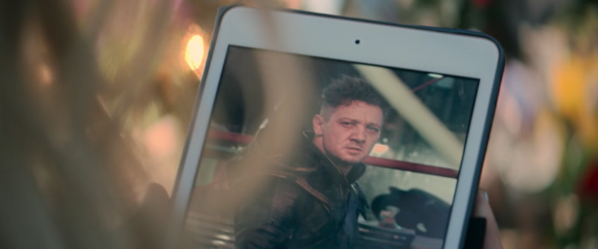その横に、「中西部アレルギーなの」と言いながら鼻をかみながらヴァレンティーナ・アレグラ・デ・フォンテーヌと名乗る女性が立っていました。「休暇中なのよ」「報酬が上がらないとね」と愚痴るエレーナに、ヴァレンティーナは「この男のせいで姉さんは死んだのよ」と、ホークアイの写真を見せて、映画は終了します。