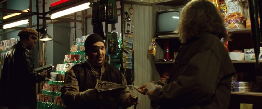 FBIがブレイドのアジトに突入したら、そこはきっとアメリカだよね、と勝手に思ったらそれは間違いです。ウィスラーが新聞を買っていた店ではスペイン語を話すし、警察もスペイン語の表記があるなど「ここどこ?」感が随所にありました。これは、ゴイヤーが意図的に作っていた世界観で、コミックにも通じる作りです。