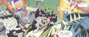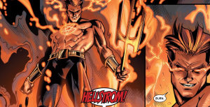 ヘルストロームの初登場は「ゴーストライダー#1」。ゴーストライダーとともにサタンと魔女と戦っている。その登場は若干サブ的であり、半裸ということもあり、燃え盛るドクロ男(ゴーストライダー)の横にいるには、ややインパクトはなかったという印象です。