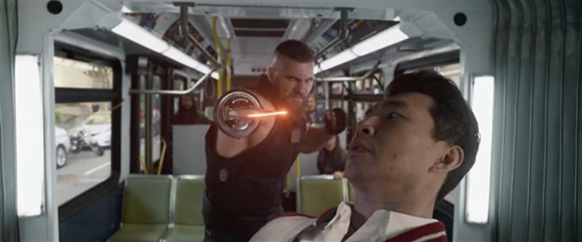 ある日、ケイティと出勤途中のバスに、怪しい男が乗り込み、シャンチーに「ペンダントをよこせ」と詰め寄ります。シャンチーの首にかかっている緑色のペンダントを狙ってきました。そして右手がナイフの男、レザーフィストがシャンチーに襲いかかります。シャンチーは、バスの中での乱闘に巻き込まれますが、ケイティと共に乗客をなんとか救い出しますが、ペンダントはまんまと奪い取られてしまいます。