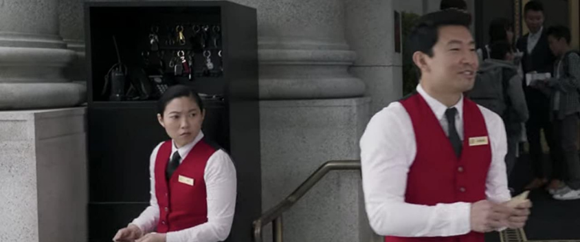ⒸMarvel Studios 2021シャンチーは、サンフランシスコにあるフェアモントホテルの駐車係として働いている青年です。ショーンと名前を変え、素性は明かしていませんが、車の運転が大好きなケイティという10年来の親友がいて、日々を穏やかに楽しんでいます。ケイティはバークレー大卒、シャンチーは4ヶ国語を話せるというのに、華々しいとは言えないキャリアであることを、弁護士の同級生スーから呆れられていますが、その日その日を楽しく過ごしたい、と考えています。