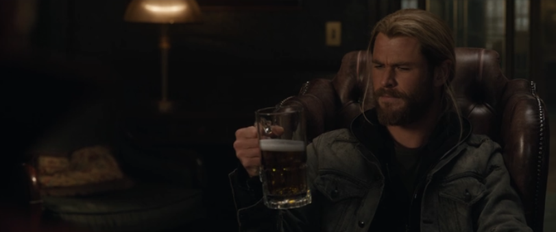 オーディンを探しにきたソーが、ストレンジの元を訪れている様子が流れます。手にしたビールは、ストレンジの力で飲んでも飲んでも減らない仕様です。オーディンを探すために手を貸すと述べるストレンジ。このシーンはそのまま「マイティ・ソー3/バトルロイヤル」のワンシーンとして登場します。
