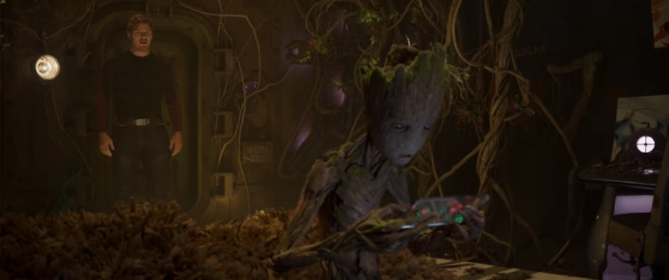 エンドクレジット中に、ものすごい勢いで成長していくグルートが描かれました。成長したグルートはゲームに夢中で、クイルに汚い部屋を怒られても無視。まさに思春期のようなティーン・グルート。この成長速度がインフィニティ・ウォーでは巨大グルートとして戻ってくる伏線になっているのではと考えられています。また、クイルがグルートの言葉の意味を読み取れるようになっていることにも注目です。