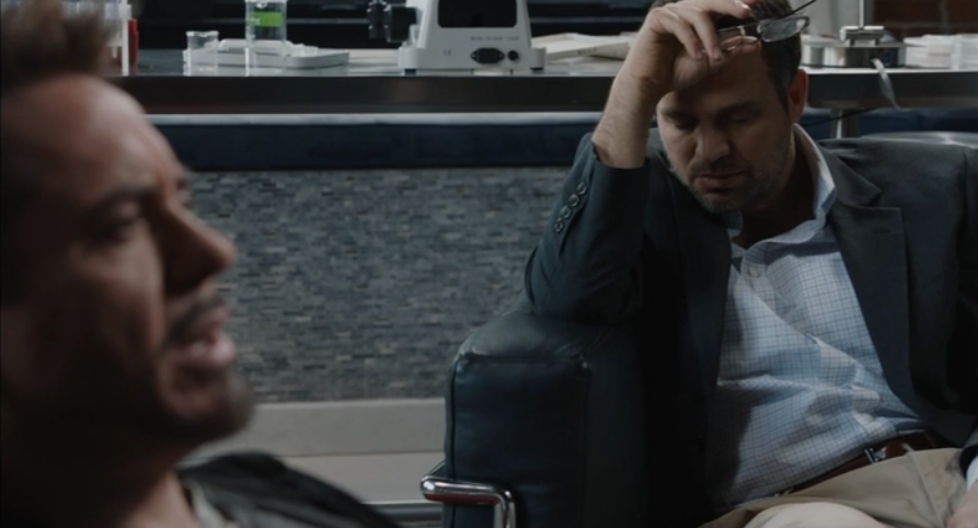 エンドロール後、スタークがバナーに話をしている様子が出てきます。「アイアンマン3」の話は昔話を語っている体になっていました。