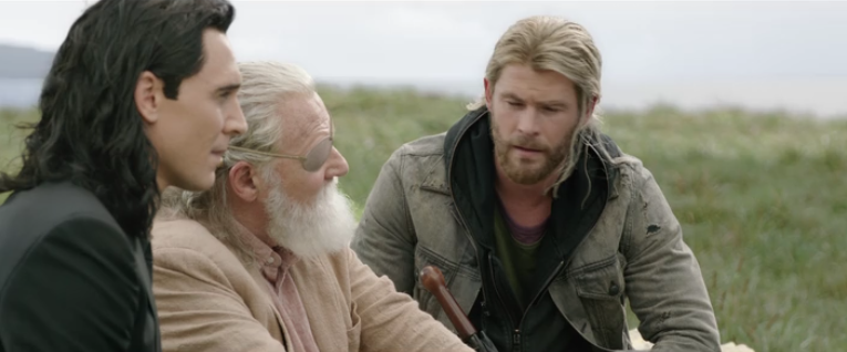 左からマットデイモン、ルーク・ヘムズワース、サム・ニールアスガルドで行われていた前作「ダークワールド」でのロキの死亡シーンの寸劇。実は寸劇を演じていたのはとても豪華な俳優陣だということに気づきましたか。ソー役はルーク(クリス・ヘムズワースの実の兄)、オーディン役はサム・ニール(ジュラシックパークの主人公)、ロキ役はマット・デイモン(オデッセイシリーズなどに出演の実力派)です。ほんの少しの登場シーンにも関わらずこだわっていますね。