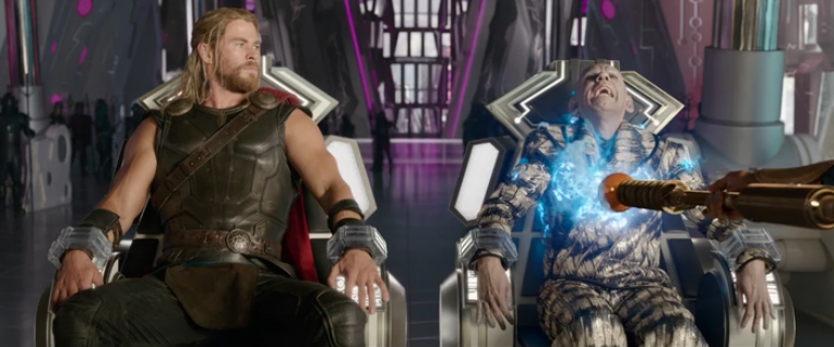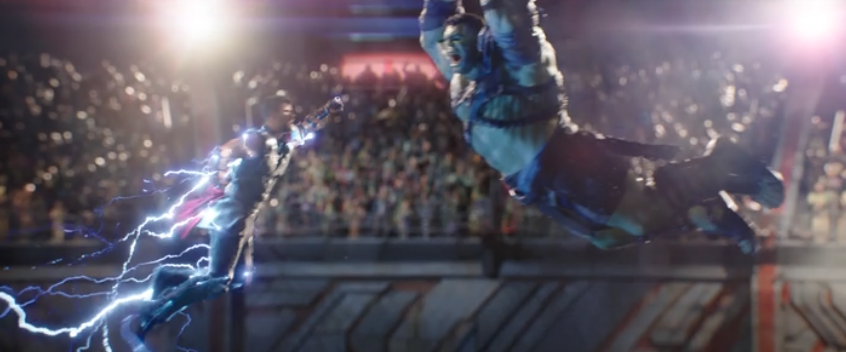 髪を切られ戦いの場に出されたソーの目の前に現れた王者は、なんとハルク。戦いの最中、ソーは雷の力を扱えるようになります。グランドマスターの邪魔もあり、ハルクが勝った形で終わります。