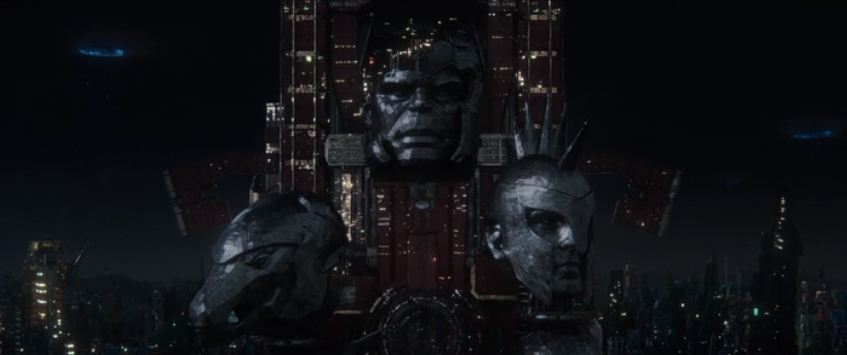 ⒸMarvel Studios 2017バトルロイヤルのチャンピオン達を讃える顔の像には小ネタが満載でした。予告編ではハルクの顔の位置にマンシングの顔が設置されていましたが、本編では並びが変更されています。