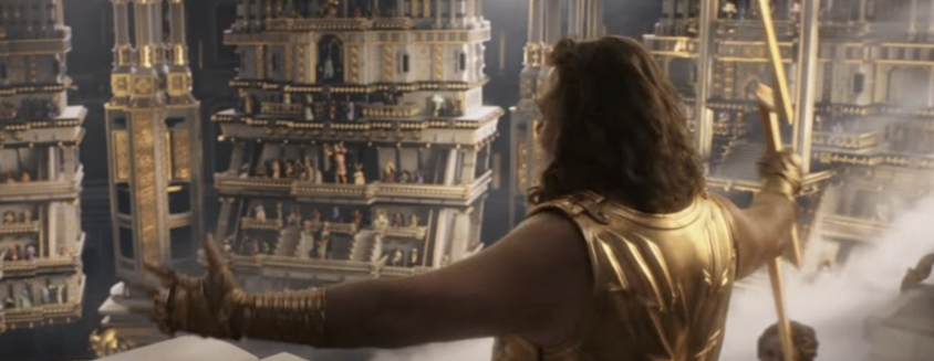 ソーたちは、ゼウスに呼ばれ中央のステージに立つことになります。ゴアと戦うため、子供たちを取り戻すために「最強の軍隊を集めたくてここにきた」と説明しますが、ゼウスはゴアが殺して回っている神も大した神でないこと、どの神も自分で民を守るべきだと、関わることを拒否します。