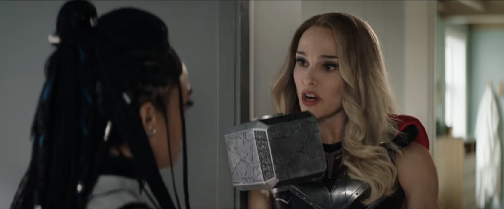 ジェーンはソーに「3、4年ぶり?」と再会を喜びますが「8年7ヶ月と6日だ」と、これまでジェーンを思い続けてきた日数を思わず口にしてしまいます(サノスの指パッチンも影響しているでしょうが)。ソー、ジェーンとも互いを大切に思いすぎたことで、失うのが怖くなった結果の別れであったこと、そしてソーはかつて、ムジョルニアに「いつか彼女を守ってくれ」と頼んでいたことを思い出しました。