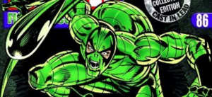 本名はマック・ガーガンで、MCU初登場はヴァルチャー同様、ホームカミングでした。首元にサソリの刺青を彫った凶悪な殺人鬼というキャラで、兵器事業に手を出したヴァルチャーの取引相手で、ラストでは、ヴァルチャー同様に収監されちゃいました。原作での登場はかなり早く1965年なのですが、シニスター・シックスのメンバーとしては、追加で参加。元は私立探偵ですが、実はスパイダーマンへの憎しみに凝り固まったJJJが黒幕になって作られた改造人間という設定です。伸縮し、電撃や酸を出す尻尾を持ちます。