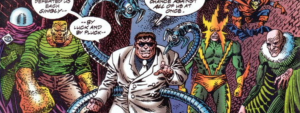 原作での結成は1964年。それまで単体でスパイディと戦ってきたヴィランたちですが負け続けてばかり。そこで、狂気の原子物理学者ドクターオクトパスの声掛けによって「せっかくだし、力合わせますか…」と集合しました。