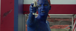 その場に到着していたチャールズたちでしたが、ウルヴァリンはストライカー少佐の顔を見て、過去の記憶をフラッシュバックさせてしまいます。それにより未来で精神転移のため寝ていたウルヴァリンは爪を出してしまい、キティを傷つけてしまいます。ウルヴァリンは混乱を起こし、しばらく目の前の危機に対応することができません。その間にもトラスクらの手から逃げ出したレイブンに、エリックは無情にも銃を向けます。レイブンを止めるには、レイブンを殺すと判断したのでした。レイブンが青い姿で逃げる様子は、テレビで全世界に放映されました。死ぬことは免れたレイブンでしたが、血痕を残してしまうことで、それを採取したトラスク博士の研究は、ついに進み始めてしまいました。